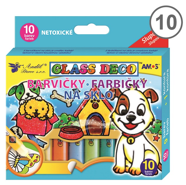 - Barvy na sklo sada 10 barev 10,5 ml + fólie a šablony