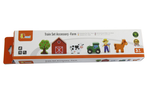 Dřevěné doplňky z farmy - balení obsahuje 7 ks - strom,domek,traktor,farmáře a 2 zvířátka - kravičku a koně o 5,5 x 5 x 1 cm ( nejmeší díl ) , 6 x 7 x1 cm ( největší díl). Rozměry balení cca 34 x 7,5 x 3,5 cm. Věk 3+
