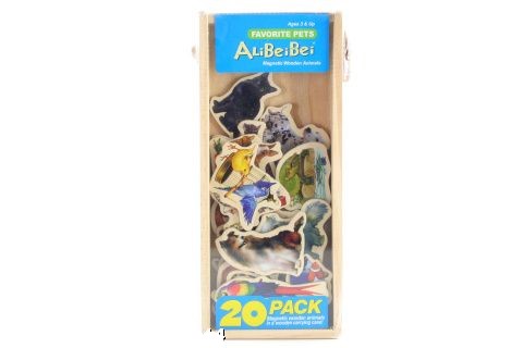 Magnety mazlíčci 20 ks - rozměr magnetu cca 8- 9 cm x 4-6 cm dle druhu. Magnety v dřevěné krabičce s plastovým víkem a v horní části s uchem na nošení. Rozměr balení cca 12 cm x 27,5 cm x 3 cm. Věk 3+