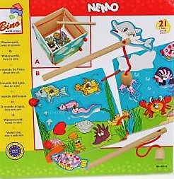 Oblíbená hra chytání rybiček-4 destičky o rozměrech: 15 x 15 cm spojené provázkem, lze použít plošně nebo sestavené do ohrádky z níž lze lovit rybičky pomocí dvou magnetických udic. V balení je cca 18 ks různých vodních živočichů.Velikost balení cca 32,5x32cm.