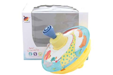 Plechová káča s obrázky zvířátek. Průměr cca 13 cm. Rozměry balení cca 15,5 x 12 x 11,5 cm. Věk 3+