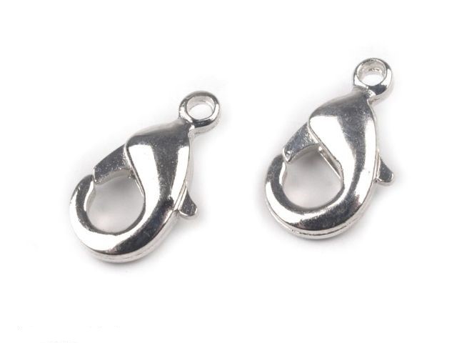 Karabinka ze zinkové slitiny s barevnou povrchovou úpravou o rozměrech 12 x 6-7 mm a s očkem pro průvlek o průměru 1,2 mm. Karabinka se používá k ukončení náramků a náhrdelníků po připevnění pomocí spojovacího kroužku ke konci řetízku, či řemínku. Komponenty ze zinkové slitiny se běžně označují jako korálky vyrobené z bižuterního kovu.