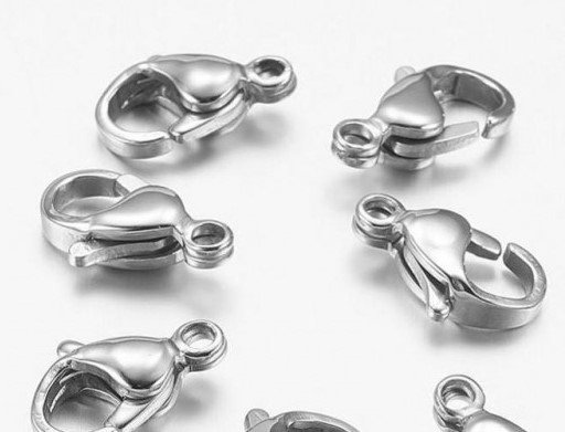 Karabinka z nerezové (chirurgické) ocele o rozměrech 12 x 6,2 mm a s očkem pro průvlek o průměru 1 mm. Karabinka je vyrobena z nerezové ocele typu 304. Karabinka se používá k ukončení náramků a náhrdelníků po připevnění pomocí spojovacího kroužku ke konci řetízku, či řemínku.