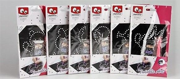 Kartička s nalepovacími třpytkami. Udělej si vlastní pohlednici. Součástí balení je tvořítko.