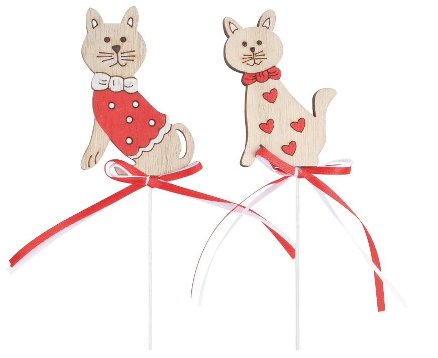 - Kočka dřevěná 7,5 cm s mašlí + špejle 4280