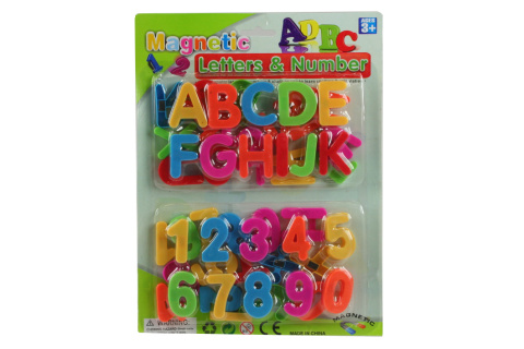 Sada magnetů-písmen a čísel.Rozměr balení 29x21,5cm.Velikost každého čísla či písmena cca 4 cm.Věk 3+