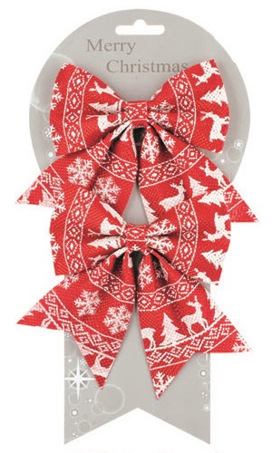 Mašle červená s norským vzorem 13 cm, 2 ks 2002