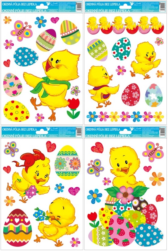 Okenní fólie s glitry velikonoční kuřátka a vejce 27x20cmSkladem30 Kč/ ks25 Kč bez DPH