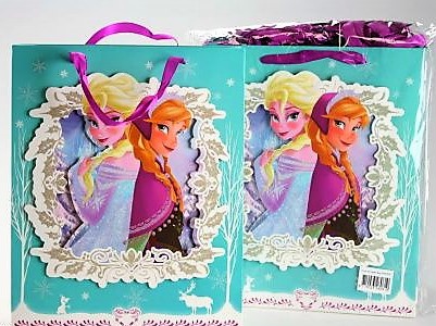 Papírová taška s potiskem z filmu Ledové království o rozměrech cca 32x 26cm.