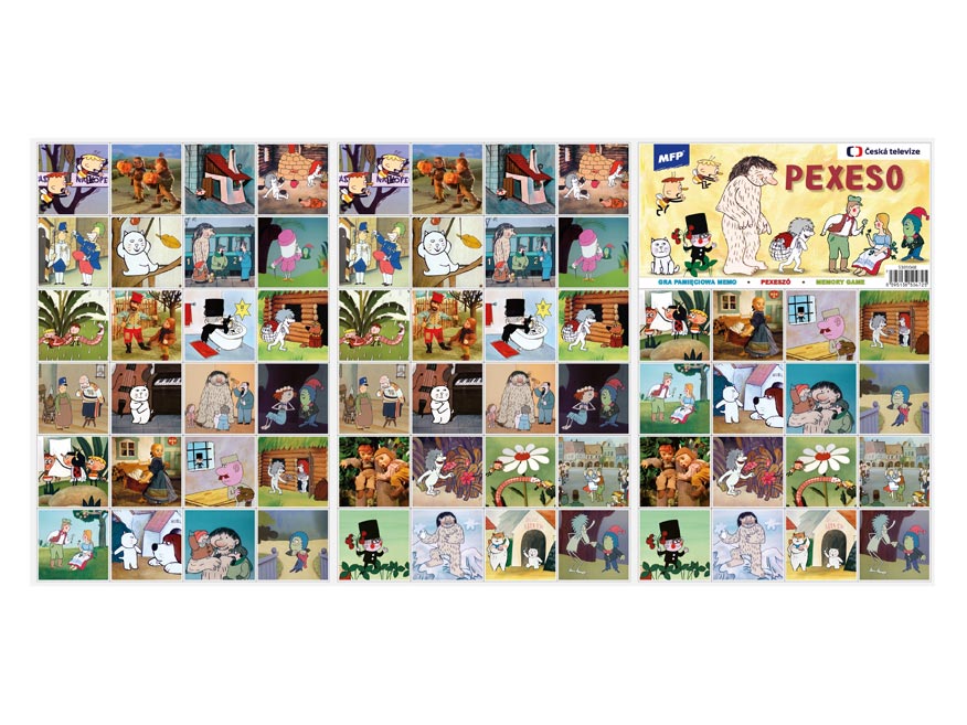 PEXESO je populární dětská stolní hra, která nikdy neomrzí a zapojit se můžou i dospělí. Pexeso - Večerníčky z ČT - nás zavede zpět do pohádkového světa ČT. V pexesu se můžete těšit na příběhy z pohádek O človíčkovi, O Sazinkovi, Chaloupka na vršku, Sněžný muž Hugo, Jak Bzuk a Ťuk putovali za sluníčkem, Vodník Čepeček, O Kubovi a Stázině a Příhody kocourka Damiána. Věděli jste, že slovo PEXESO vzniklo souslovím slov PEKELNĚ SE SOUSTŘEĎ? Výborná učební pomůcka pro děti a rodiče. Naučte své děti poznávat nová slovíčka a procvičujte jejich paměť. Tato hra je zabaví na dlouhé hodiny.