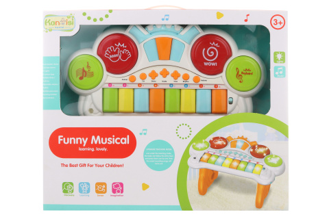 Dětské piánko na baterie. Piánko vydává zvuky a svítí. Napájení na 4 AA baterie (nejsou součástí). Rozměry piánka cca 38 x 18 cm. Rozměry balení cca 46,5 x 38,5 x 8,5 cm. Věk 3+