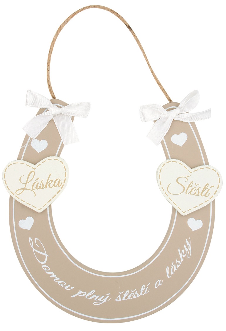 Podkova dřevěná béžová "Domov plný.."14x14 cm