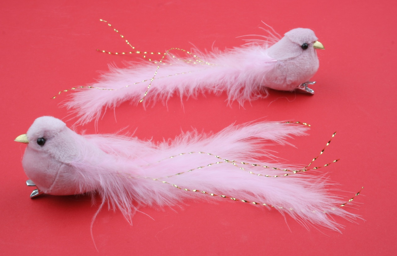 Ptáček plyšový růžový na klipu 2 ks, 14 cm 18048