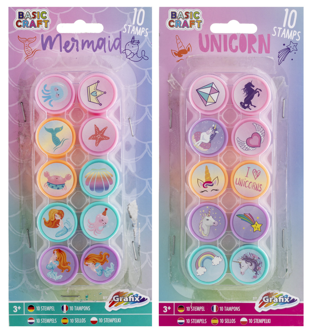 Razítka Jednorožec/Mořská víla – sada obsahuje 10 razítek s motivem Jednorožce nebo Moříské víly.