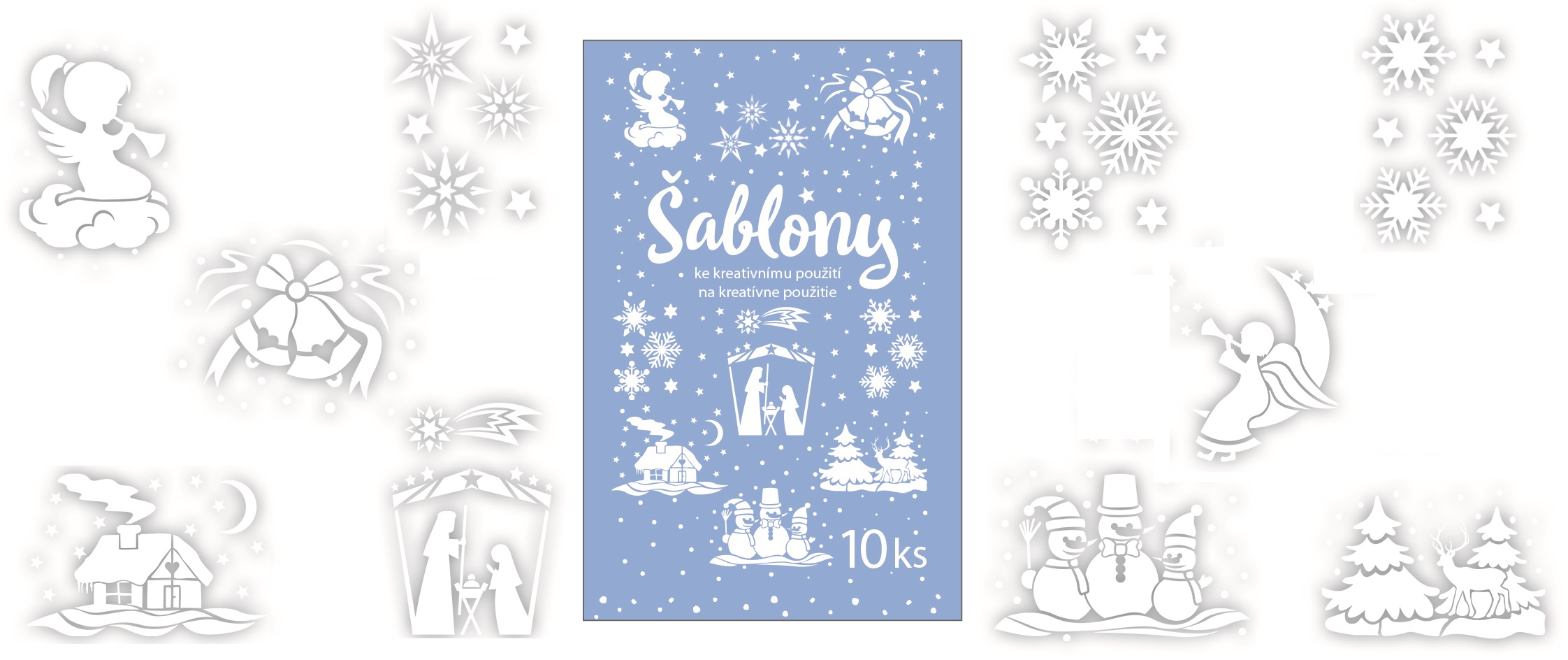 Šablony vánoční 10 motivů 31x21 cmSkladem40 Kč/ ks33 Kč bez DPH