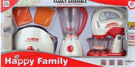 Sada kuchyňských přístrojů. Balení obsahuje toustovač, mixér a šlehač. Napájení mixéru na 3 AA baterie a šlehače na 3 AA baterie (nejsou součástí balení). Rozměry balení cca 43,5 x 22 x 9,5 cm. Věk 3+