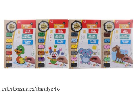 Sada vyšívání s motivy zvířátek a klauna. Balení obsahuje 6 bavlnek různých barev, jehlu, předlohu a vyšívací tkaninu. Rozměry balení cca 17 x 26 x 4 cm. Věk 5+