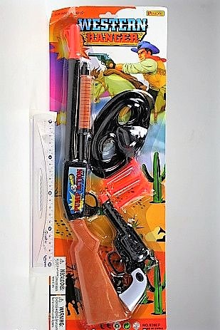 Sada obsahuje pušku na přísavky o velikosti cca 48 cm,plastovou pistolku o velikosti cca 18 cm,3 přísavky a masku pro banditu .Věk 3+