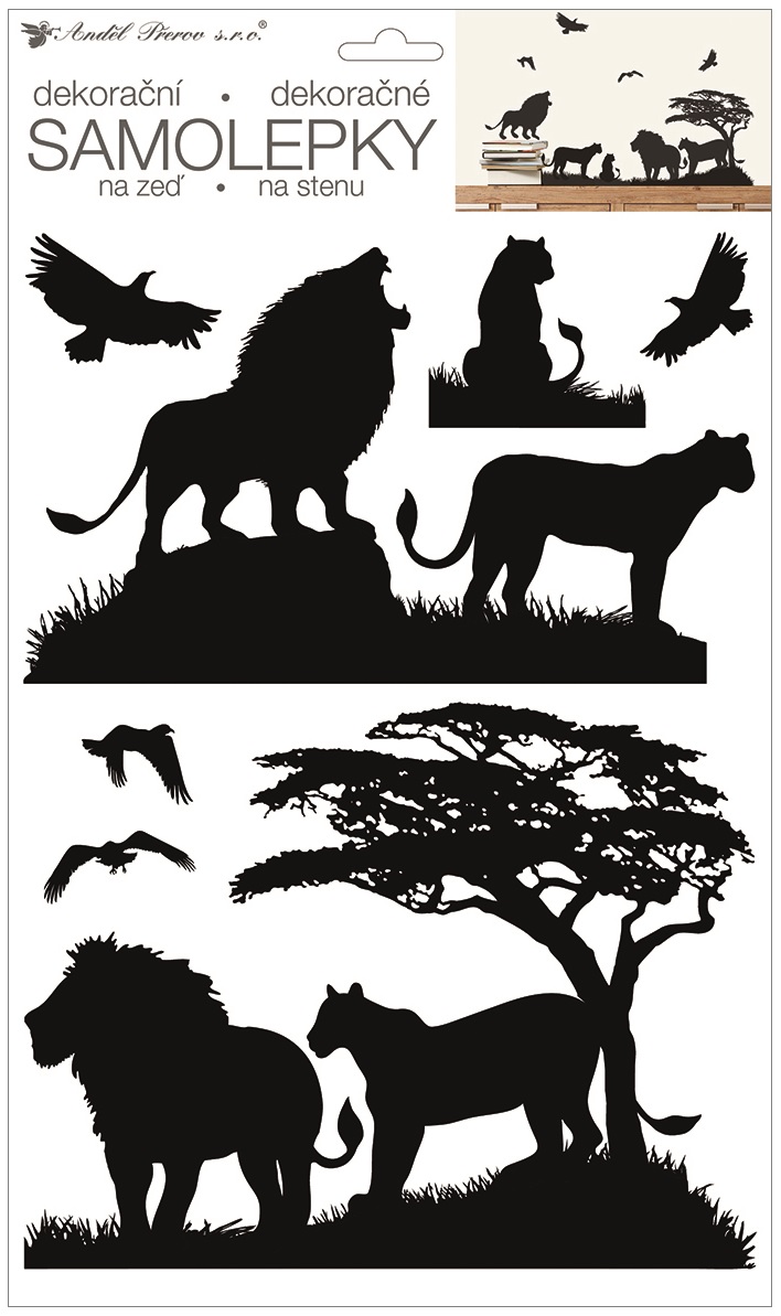 Samolepka na zeď černá lvi 24 x 42 cmSkladem45 Kč/ ks37 Kč bez DPH