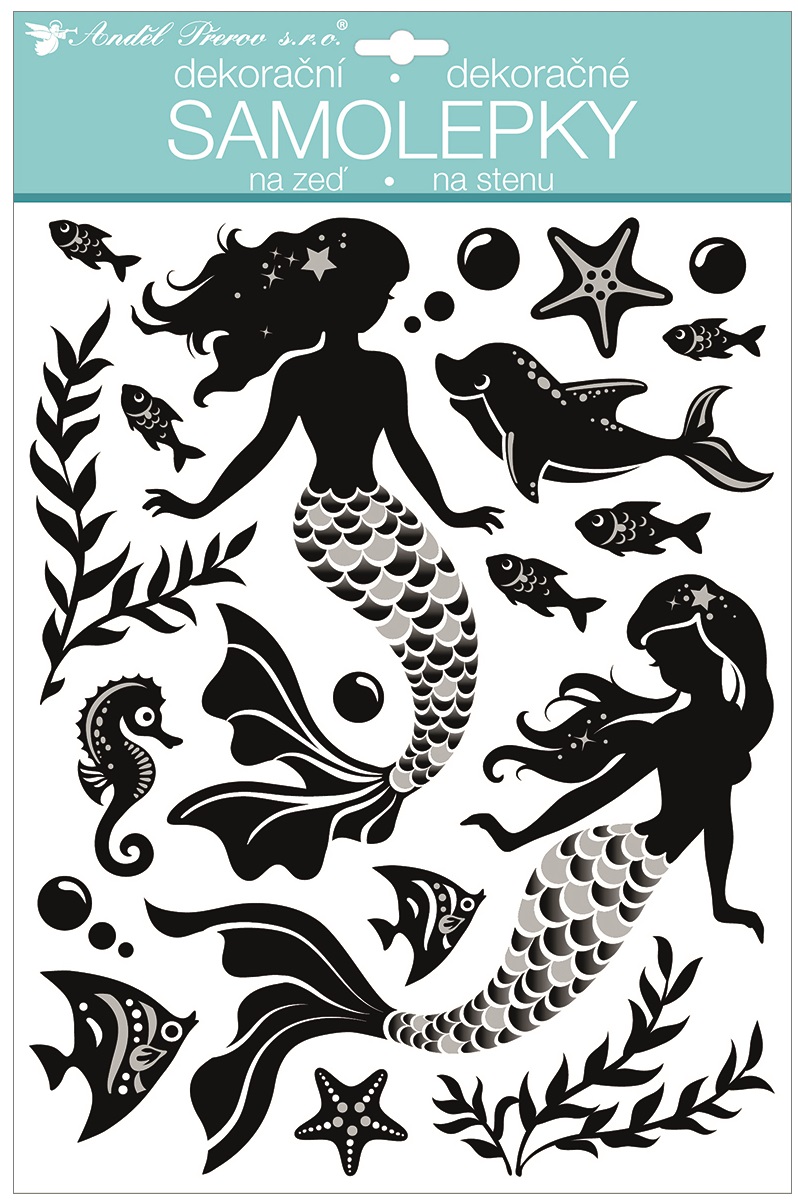 Samolepka na zeď s glitry 42 x 28 cm, mořské pannySkladem70 Kč/ ks58 Kč bez DPH