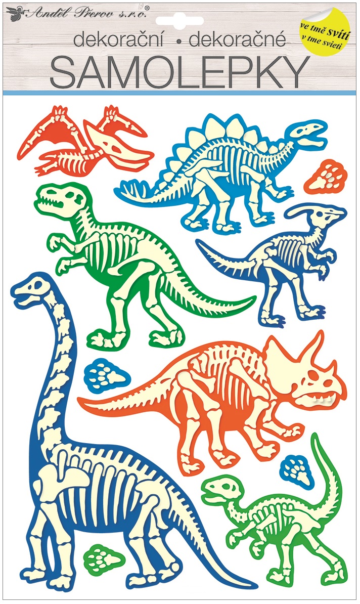 - Samolepka na zeď svítící ve tmě 41 x 25 cm, dinosauři