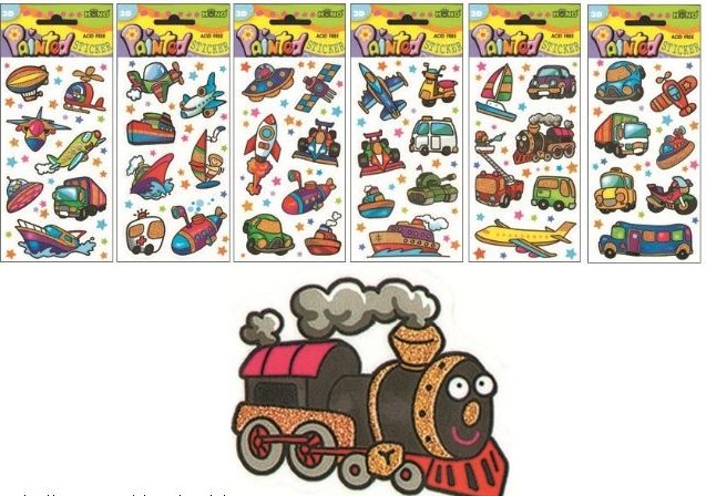 Samolepka s glitry - dopravní prostředky 18,5x8cmSkladem20 Kč/ ks17 Kč bez DPH