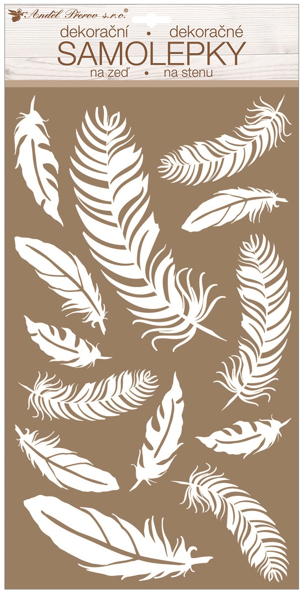 - Samolepky na zeď bílá pírka s glitry 24 x 47,5 cm
