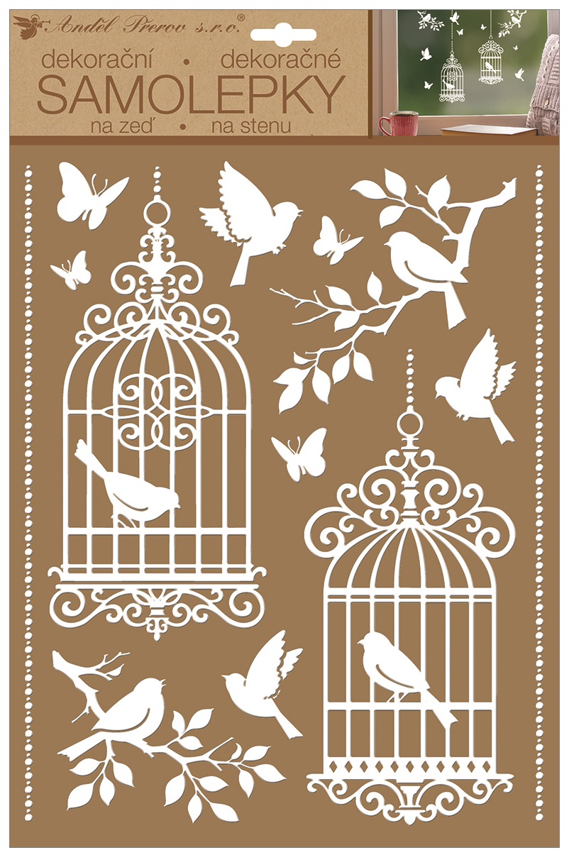 - Samolepky na zeď bílé ptačí klece 27,5 x 41 cm