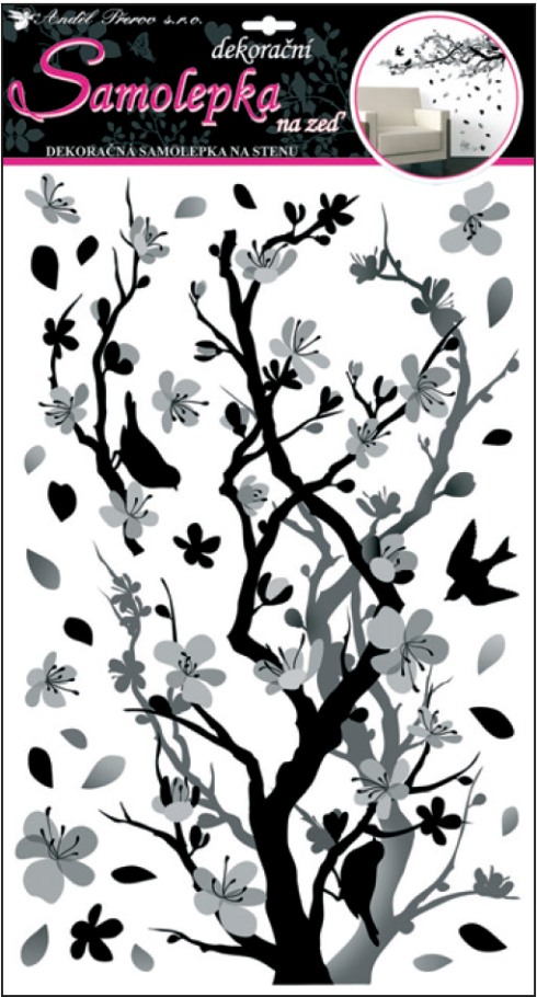 Samolepky na zeď černošedá větvička 50x32cmSkladem90 Kč/ ks74 Kč bez DPH