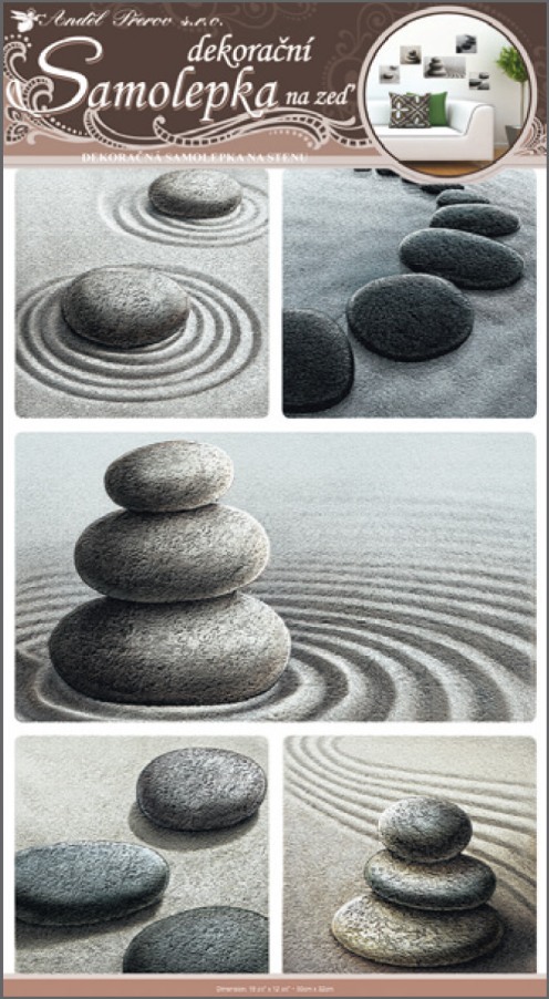 Samolepky na zeď kameny v písku 50x32cmSkladem90 Kč/ ks74 Kč bez DPH