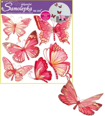 - Samolepky na zeď 30,5 x 30,5 cm, růžoví motýli s pohyblivými křídly 655