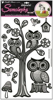 Samolepky na zeď strom se sovami s rastrem 50x32cmSkladem90 Kč/ ks74 Kč bez DPH