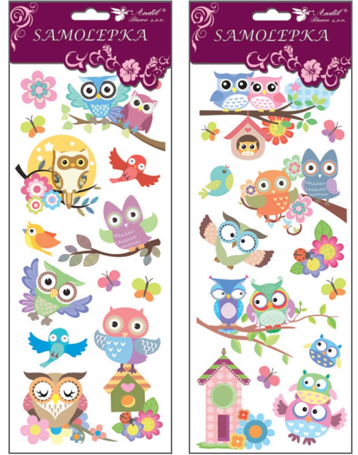 - Samolepky sovičky s glitry 30x12 cm