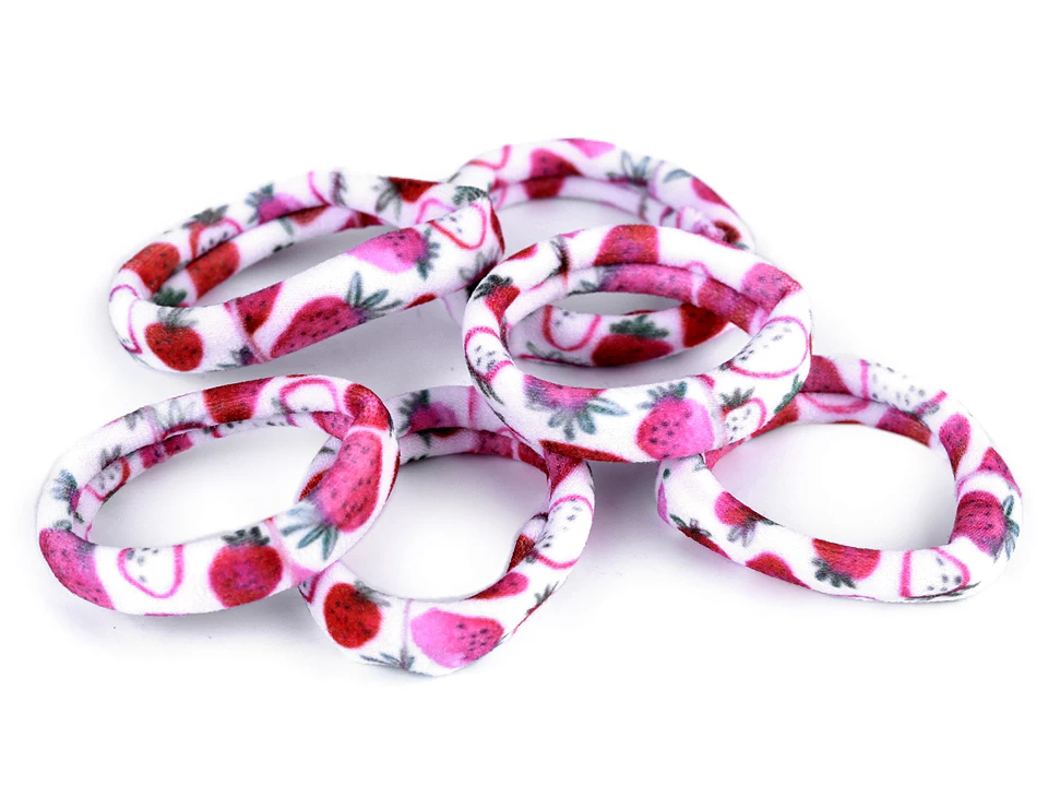Barevné gumičky do vlasů s potiskem ovoce prozáří účesy slečnám každého věku. Tyto gumičky jsou k vlasům velmi šetrné a výborně drží. Jsou proto vhodné pro všechny typy vlasů.