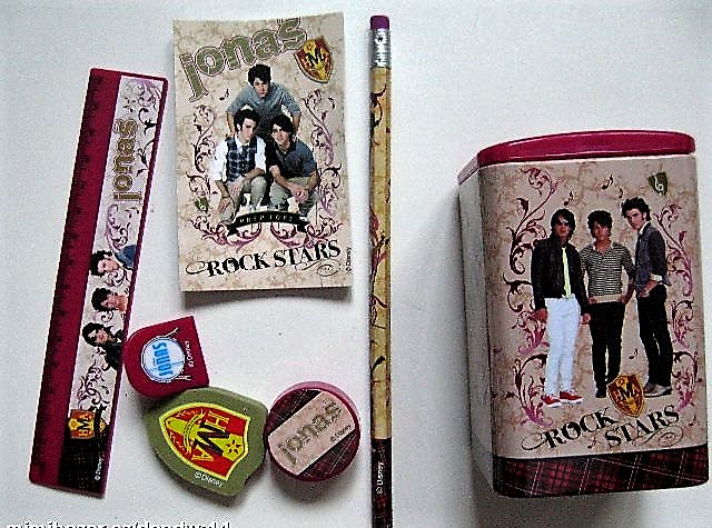 ořezávátko, guma, pravítko, bloček, tužka, spona, stojánek
