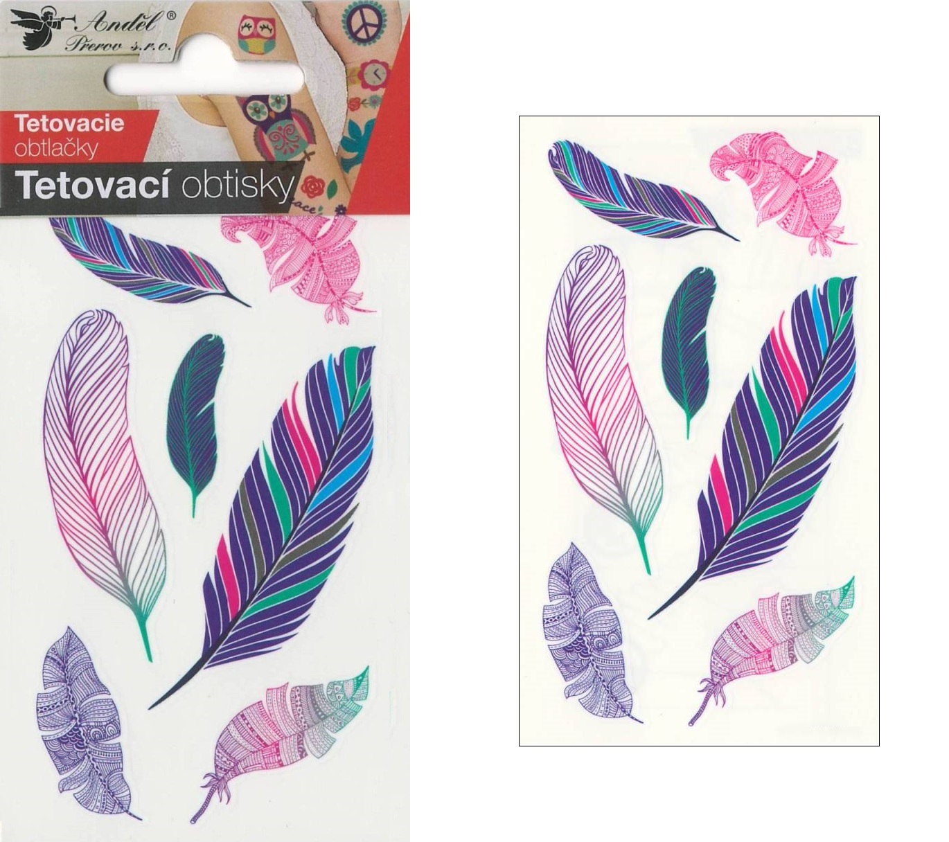 - Tetovací obtisky 10,5x6 cm- pírka