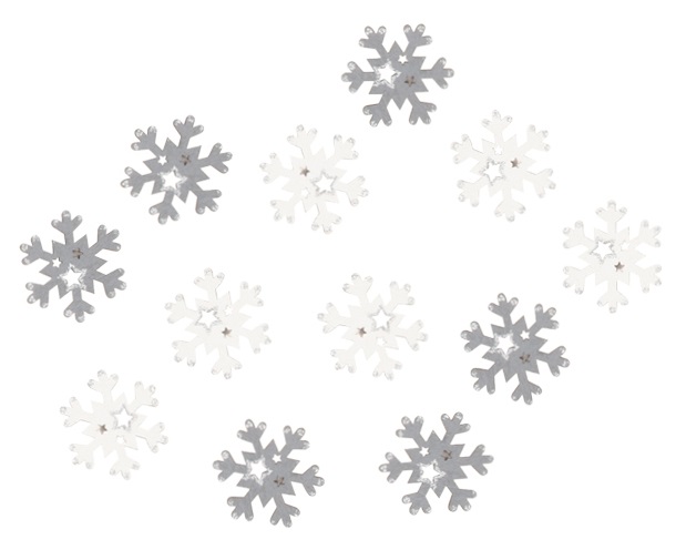 Vločka dřevěná s lepíkem 4 cm šedá a bílá, 12 ks 4933