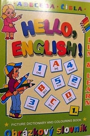 Vymalovánky A4 Hello,English! 1.Zábava s pastelkou a nové anglické slovíčka s tématikou.V tomto sešitu děti najdou na šestnácti stránkách abecedu a čísla se správnou výslovností.Na konci sešitu je přehledný slovník se slovíčky.