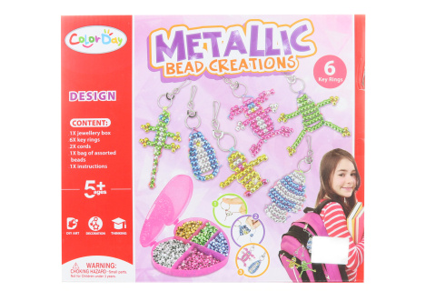 Sada pro výrobu přívěšků z korálků. Balení obsahuje barevné korálky, kroužky s karabinou, barevné šňůrky a krabičku na korálky ve tvaru srdce. Rozměr balení cca 29 x 25,5 x 6 cm. Věk 5+