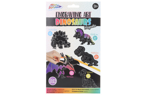 Sada vyškrabovacích obrázků - dinosauři. Balení obsahuje 10 obrázků, škrabací pero a 10 magnetů. Rozměry balení cca 15 x 25 cm. Věk 3+