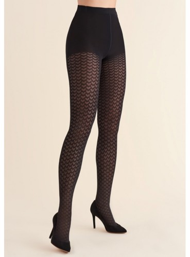 Dámské vzorované punčochové kalhoty z mikrofibry vyrobené technologií Lycra 3D. Punčochové kalhoty jsou ozdobené vzorem drobných srdíček. Absence samostatné kalhotkové části, žádná vyznačená špička, plochý šev a malý bavlněný klínek činí módní punčochové kalhoty hřejivé a velmi pohodlné na celodenní nošení. Punčocháče jsou vhodné pro podzimní a zimní období.
