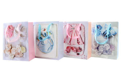 Dárková taška k narození miminka. Materiál papír. Rozměry 18x23x8,5 cm. Výrobek není hračka.
