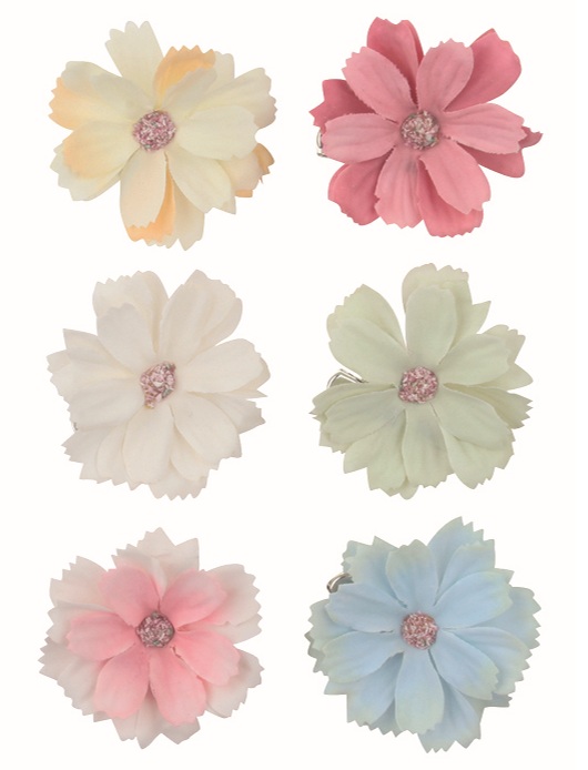 Dekorační Květiny 4,5 x 1 x 4,5 cm na klipu, 6 ks 17173