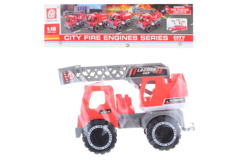 Plastové požární auto s výsuvným ramenem o rozměru 23 x 15,5 x 10 cm. Baleno v sáčku. Rozměr balení cca 27 x 27 x 10 cm. Věk 3+