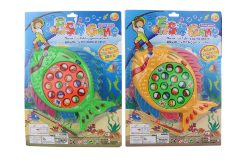 Velká hra rybičky. Rybičky se otáčejí a pomocí 2 prutů je rybáři chytají. Napájení na baterie 2x AA (nejsou součástí balení). Rozměry hry cca 29 x 23 cm. Věk 3+