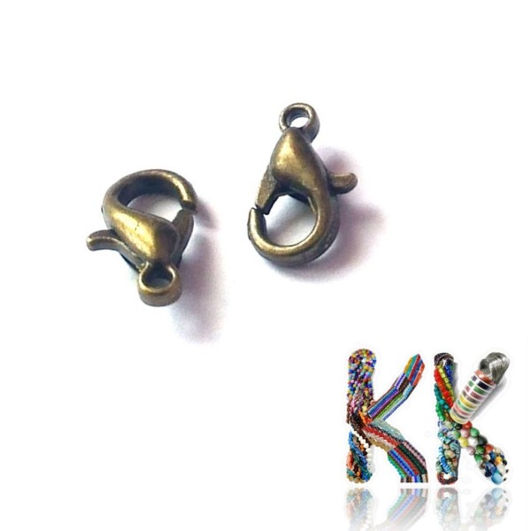Karabinka ze zinkové slitiny s barevnou povrchovou úpravou o rozměrech 10 x 6 mm a s očkem pro průvlek o průměru 1 mm. Karabinka se používá k ukončení náramků a náhrdelníků po připevnění pomocí spojovacího kroužku ke konci řetízku, či řemínku. Komponenty ze zinkové slitiny se běžně označují jako korálky vyrobené z bižuterního kovu.