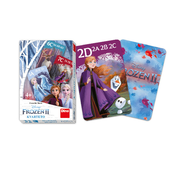 Klasická karetní hra kvarteto s motivem nové pohádky FROZEN 2 - Ledové království od Walta Disneyho je tady! Kvarteto je hra, kde hráči tahají karty jeden od druhého a skládají z nich čtveřice. Vítězem se stává hráč, který nemá v ruce žádné karty a na stole má nejvíce „kvartet“. S touto oblíbenou karetní hrou se zaručeně nebudeš nudit!
