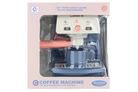 Plastový kávovar na baterie. Napájení na 2 AA baterie (nejsou součástí). Kávovar vydává zvuky a svítí stejně jako při přípravě kávy. Kávovar o velikosti 16,5 x 17 cm. Rozměry balení cca 19 x 20 x 12,5 cm. Věk 3+