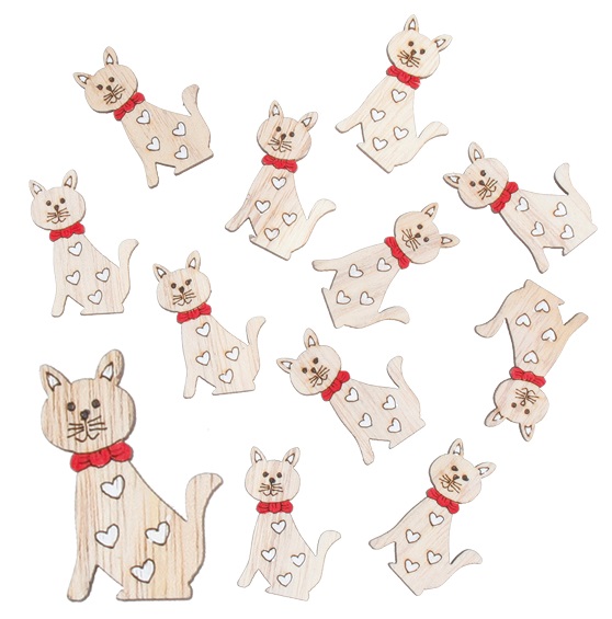 - Kočka dřevěná s mašlí s lepíkem 2,5 x 4 x 0,3 cm, 12 ks přírodní 4275