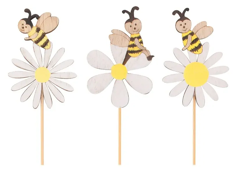 Dřevěná květinka s včelkou na špejli